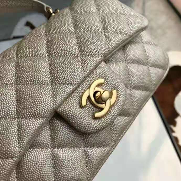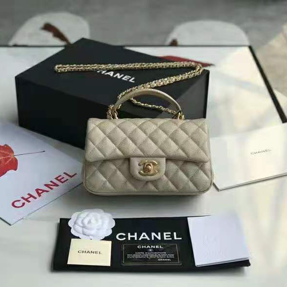 Chanel mini flap bag with top handle Come with serial numbers, Chanel authenticity card, Chanel dust bag, Chanel Box and Chanel care booklet.