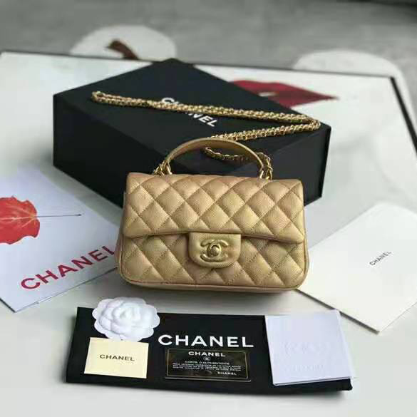 Chanel mini flap bag with top handle Come with serial numbers, Chanel authenticity card, Chanel dust bag, Chanel Box and Chanel care booklet.