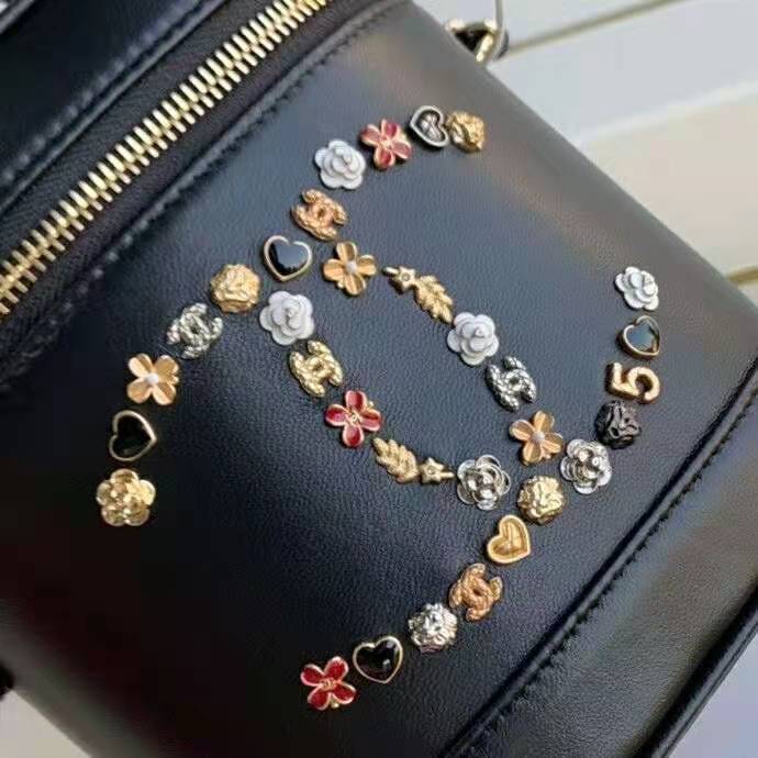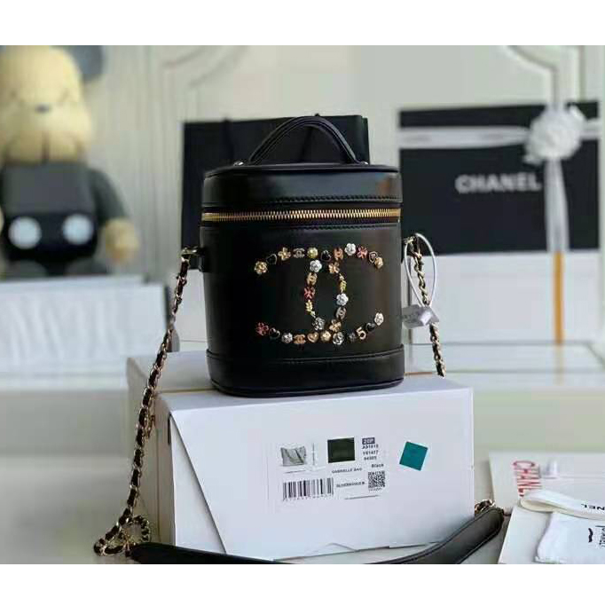 Chanel vanity case Come with serial numbers, Chanel authenticity card, Chanel box, Chanel dust bag and Chanel care booklet.