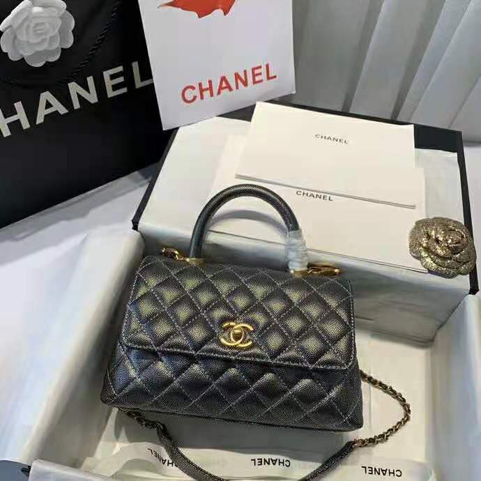 Chanel mini flap bag with top handle Come with serial numbers, Chanel authenticity card, Chanel box, Chanel dust bag and Chanel care booklet.