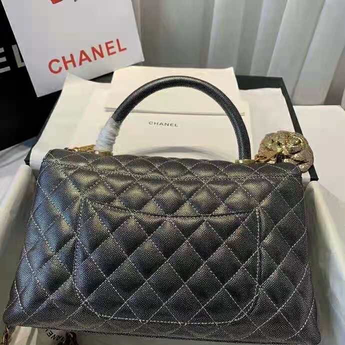 Chanel mini flap bag with top handle Come with serial numbers, Chanel authenticity card, Chanel dust bag and Chanel care booklet.