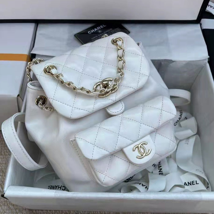 Chanel Backpack Come with serial numbers, Chanel authenticity card, Chanel dust bag, Chanel care booklet.