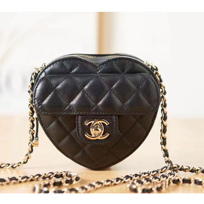 Chanel Heart Clutch With Chain Come with serial numbers, Chanel authenticity card, Chanel box, Chanel dust bag and Chanel care booklet.