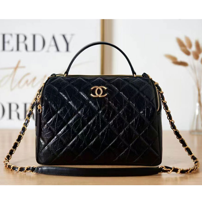 Chanel BOWLING BAG Come with serial numbers, Chanel authenticity card, Chanel dust bag, and Chanel care booklet.