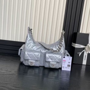 Chanel large hobo bag Come with serial numbers, Chanel authenticity card, Chanel dust bag, and Chanel care booklet.