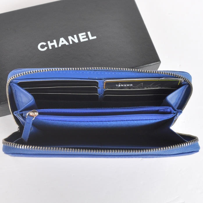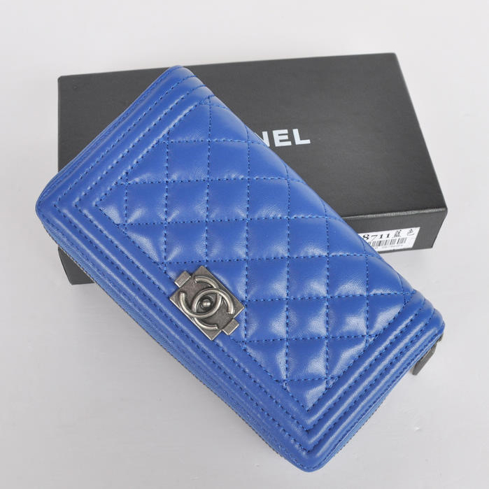 Boy Chanel A88711 Blue Matelasse Zip Around Wallet