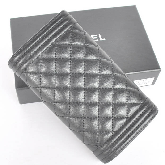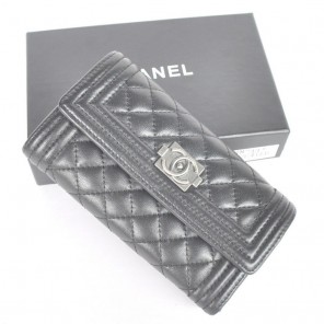 Boy Chanel A88733 Black Matelasse Long Wallet Silver