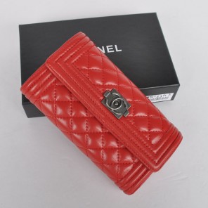 Boy Chanel A88733 Red Matelasse Long Wallet Silver