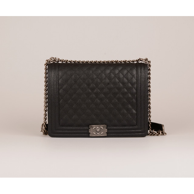 Boy Chanel Flap Shoulder Bag Caviar A67087 Black in Silver