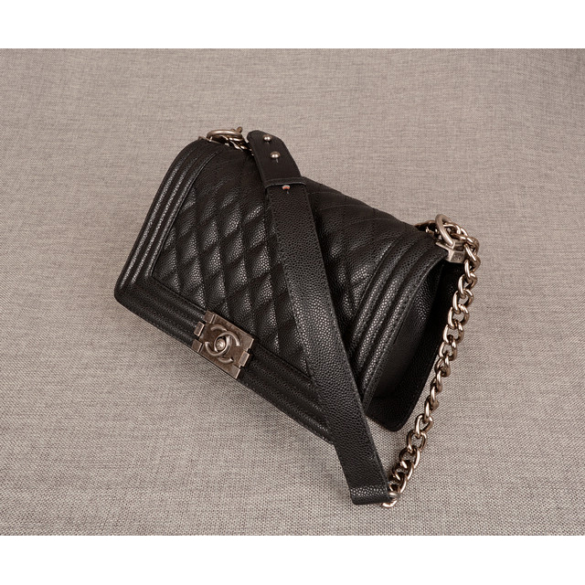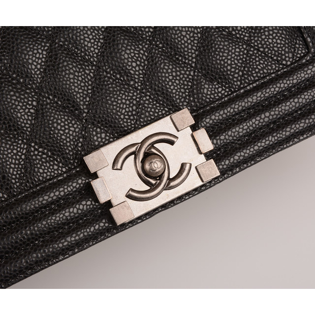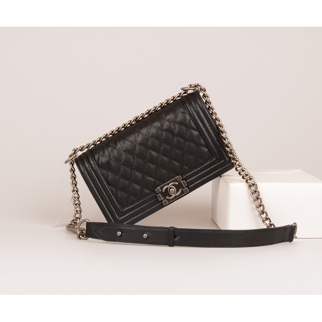 Boy Chanel Flap Shoulder Bag Caviar leather A67086 Black in Silver