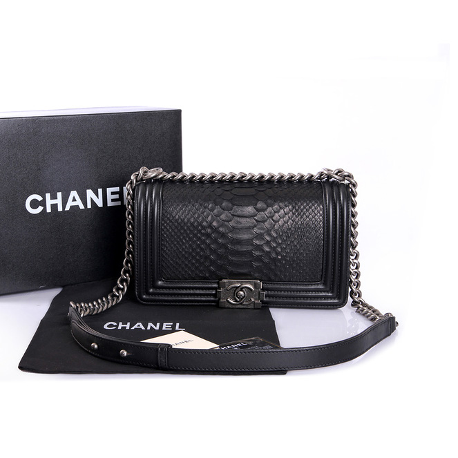 Boy Chanel Flap Shoulder Bag Genuine Python Leather A37003 Black