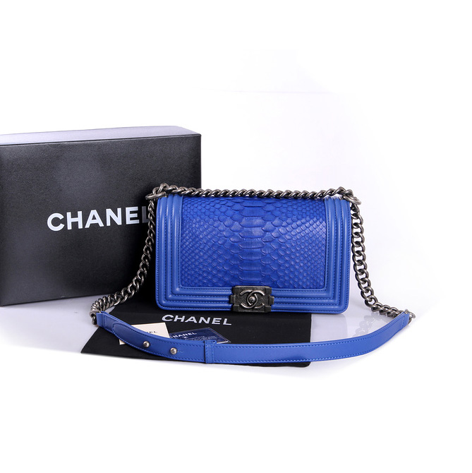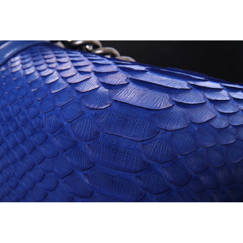 Boy Chanel Flap Shoulder Bag Genuine Python Leather A37003 Blue