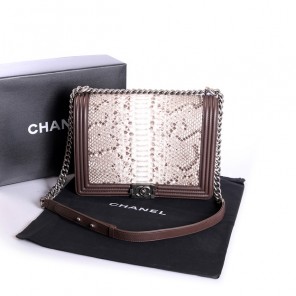 Boy Chanel Flap Shoulder Bag Genuine Snake Leather A37005 Brown