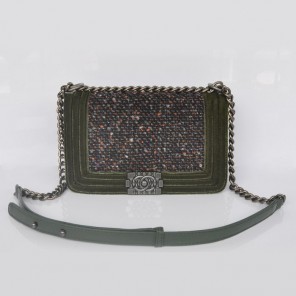Boy Chanel Flap Shoulder Bag Nubuck & Denim A67064 Green