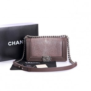 Boy Chanel Flap Shoulder Bag Original Pearl Leather A37003 Brown