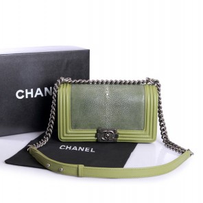 Boy Chanel Flap Shoulder Bag Original Pearl Leather A37003 Green