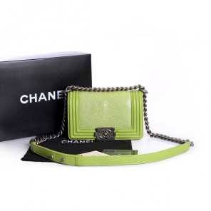 Boy Chanel Flap Shoulder Bag Original Pearl Leather A37006 LightGreen