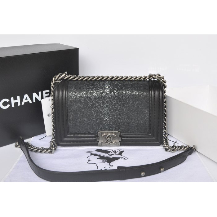 Boy Chanel Flap Shoulder Bag Original Pearl Leather A67086 Black