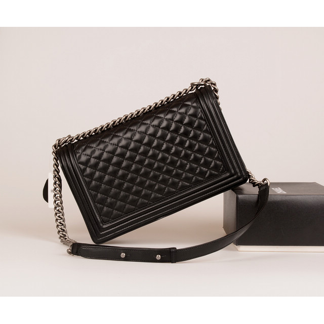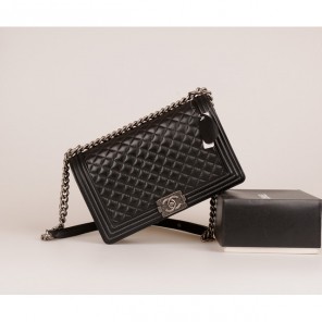 Boy Chanel Flap Shoulder Bag Original Sheepskin A67087 Black in Silver