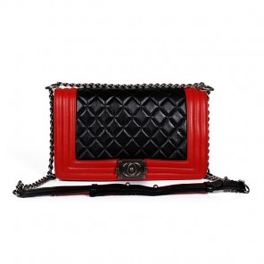 Boy Chanel Flap Shoulder Bag Sheepskin Leather A67076 Black&Red