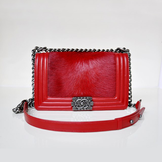 Boy Chanel Flap Shoulder Bag Sheepskin Leather with Horsehair A67759 Burgundy