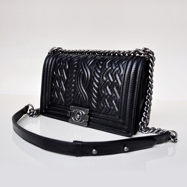 Boy Chanel Flap Shoulder Bag Sheepskin leather A66307 in Black