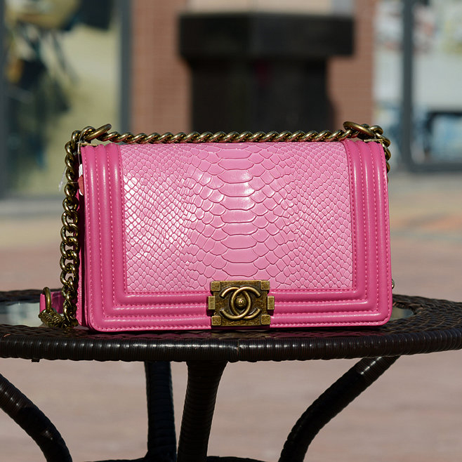 Boy Chanel Flap Shoulder Bag Snake stripes Sheepskin Leather A67025 Rose