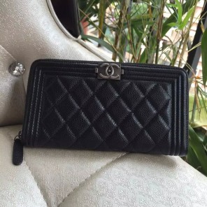 Boy Chanel Matelasse Original Caviar leather Zippy Wallet A80288 Black