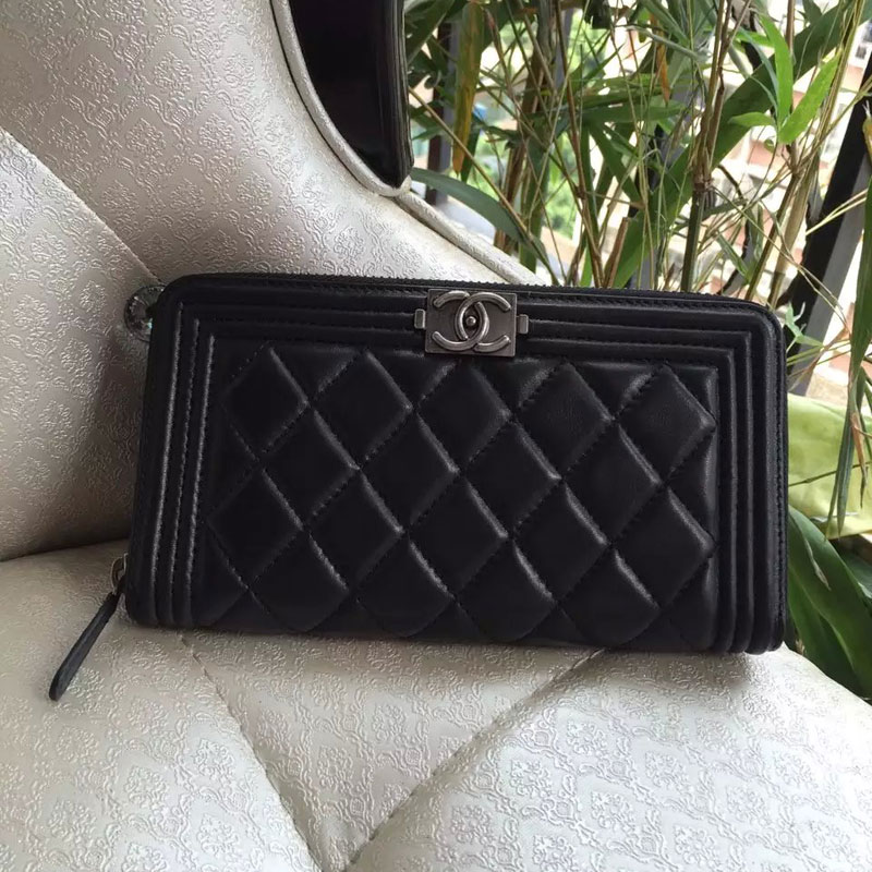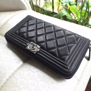 Boy Chanel Matelasse Original Sheepskin leather Zippy Wallet A80288 Black