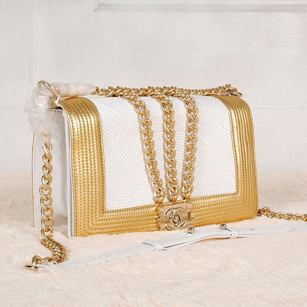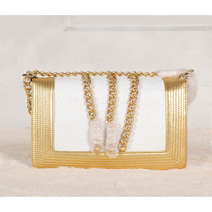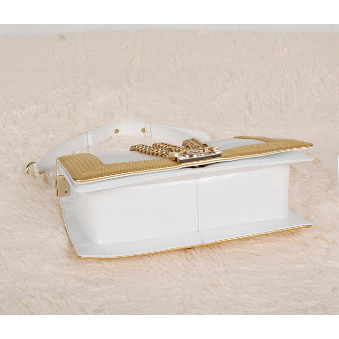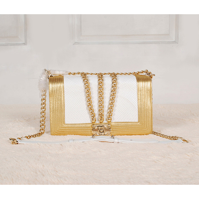 Boy Chanel Shoulder Bag Sheepskin A37002 White&Gold
