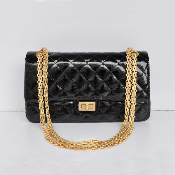 Chanel 1122 Classic Black Lizardskin Flap Bag Gold Hardware