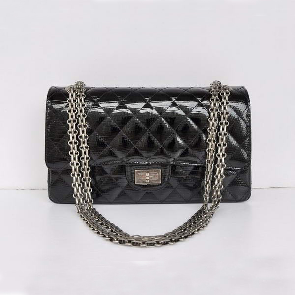 Chanel 1122 Classic Black Lizardskin Flap Bag Silver Hardware