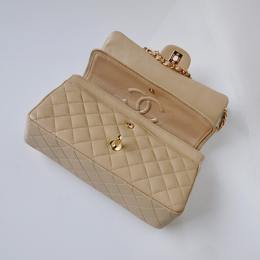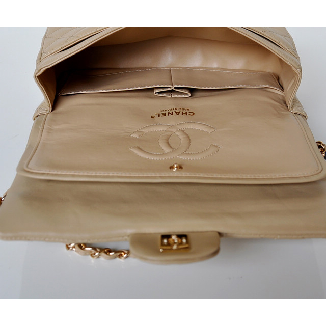 Chanel 2.55 Classic Flap Bag Sheepskin Leather in Apricot with Gold Hardware