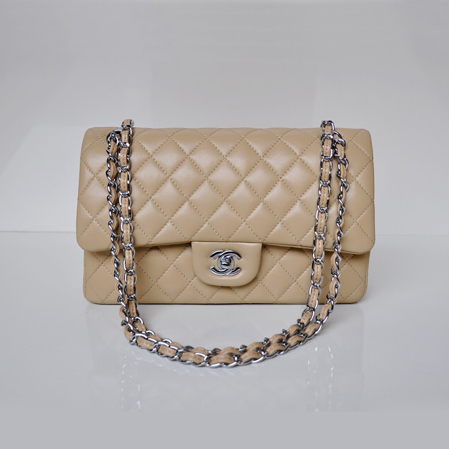 Chanel 2.55 Classic Flap Bag Sheepskin Leather in Apricot with Silver Hardware