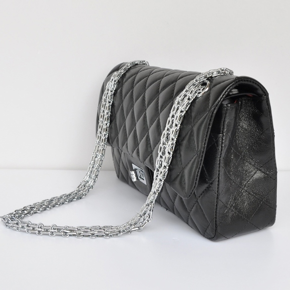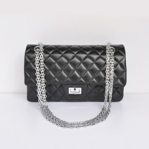 Chanel 2.55 Classic Flap Bag Sheepskin Leather in Black with Silver Hardware