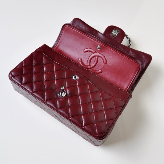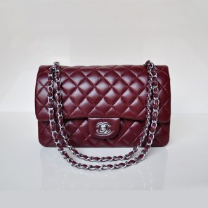 Chanel 2.55 Classic Flap Bag Sheepskin Leather in Claret with Silver Hardware