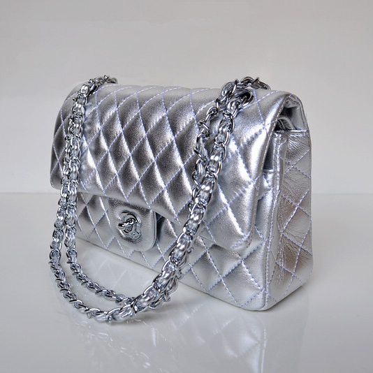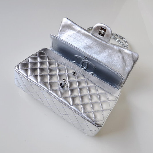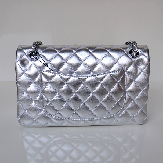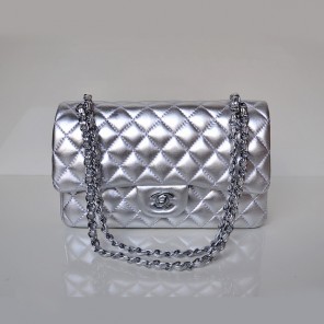 Chanel 2.55 Classic Flap Bag Sheepskin Leather in Silver with Silver Hardware