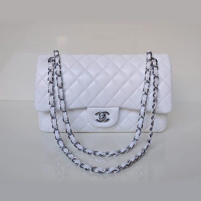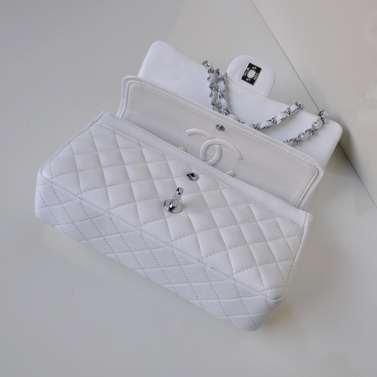 Chanel 2.55 Classic Flap Bag Sheepskin Leather in white with Silver Hardware
