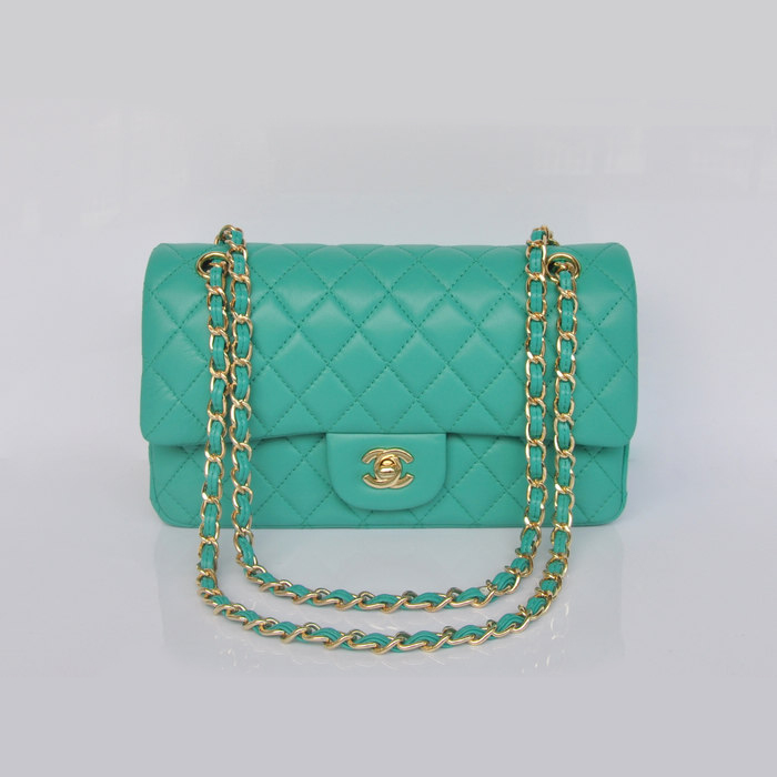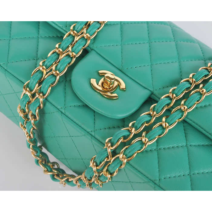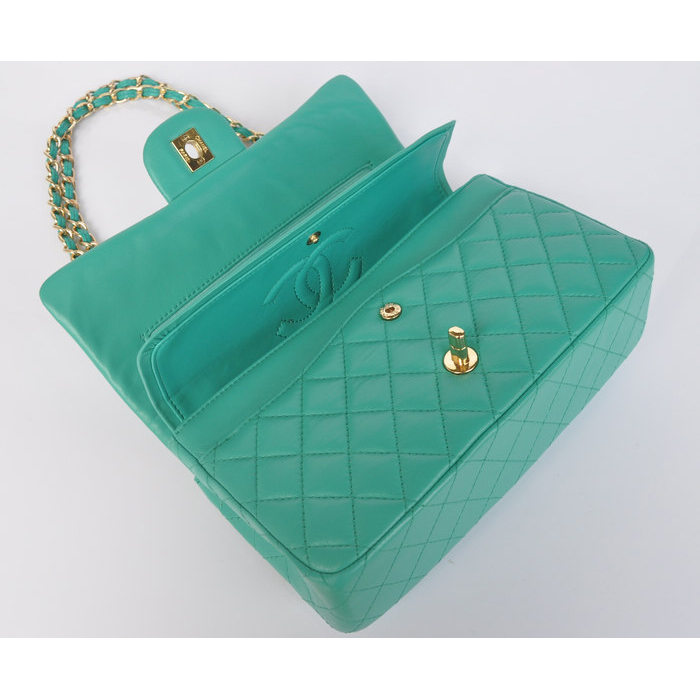 Chanel 2.55 Classic Flap Bag lake Green Sheepskin Leather Gold