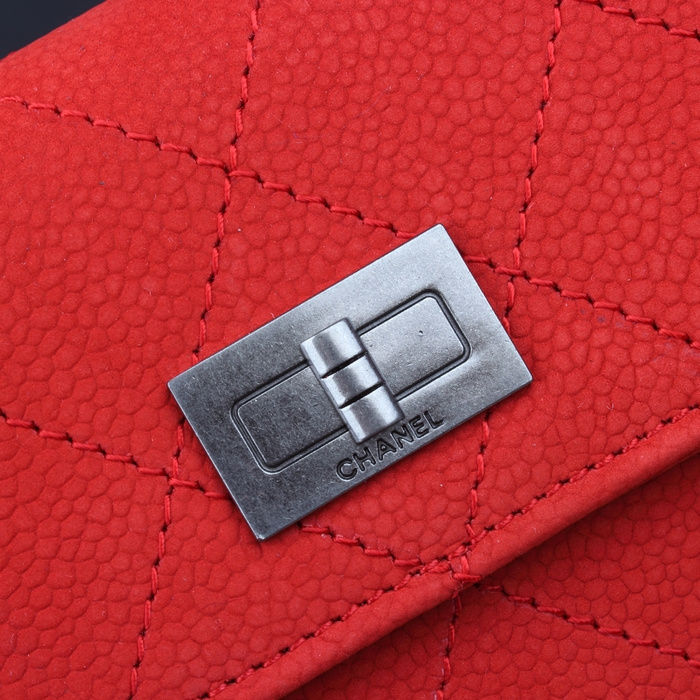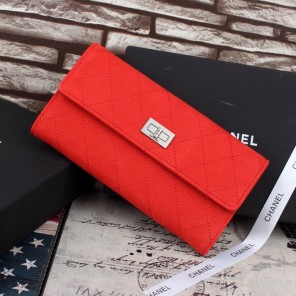 Chanel A2001 Orange Cannage Pattern Nubuck Leather Matelasse Long Wallet Silver