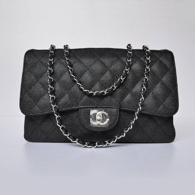 Chanel A28600 Caviar Leather Classic Flap Bag in Black with Silver