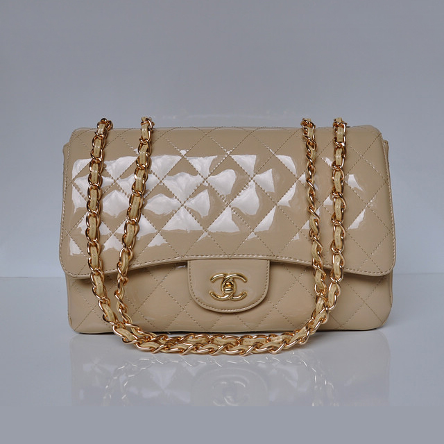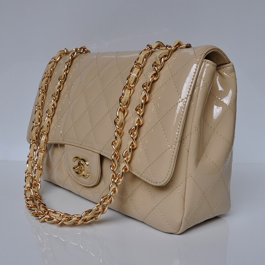 Chanel A28600 Patent Leather Classic Flap Bag in Apricot with Gold
