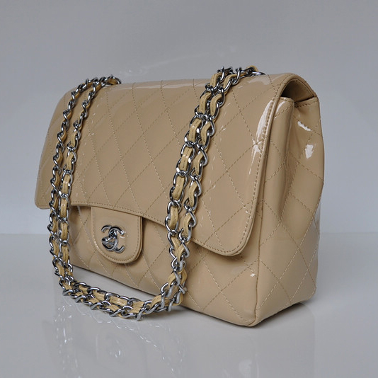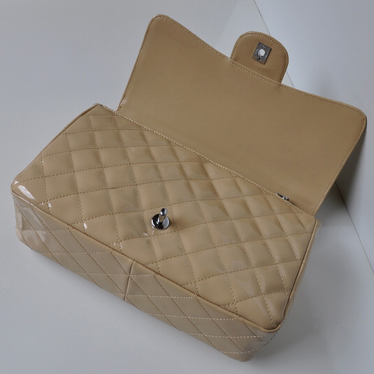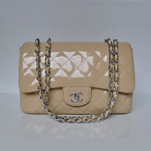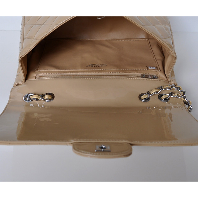 Chanel A28600 Patent Leather Classic Flap Bag in Apricot with Silver