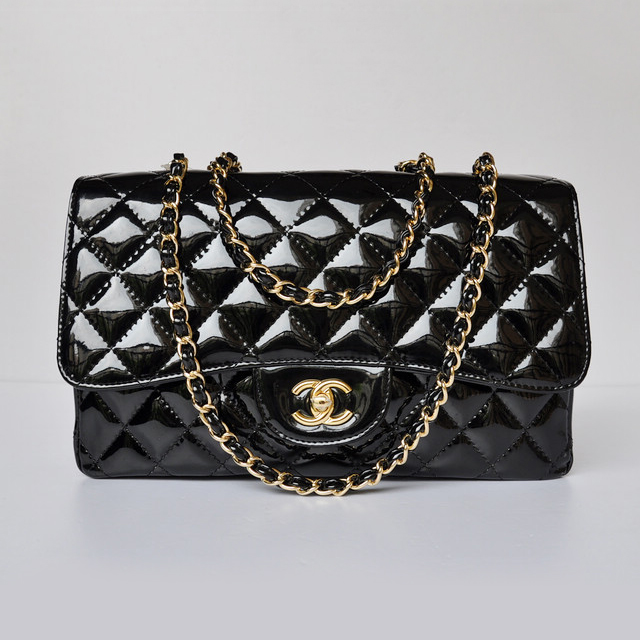 Chanel A28600 Patent Leather Classic Flap Bag in Black with Gold