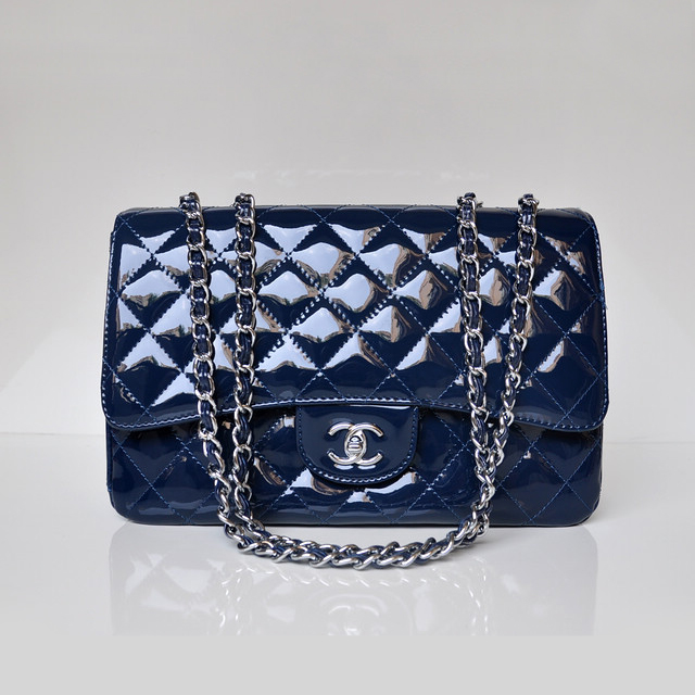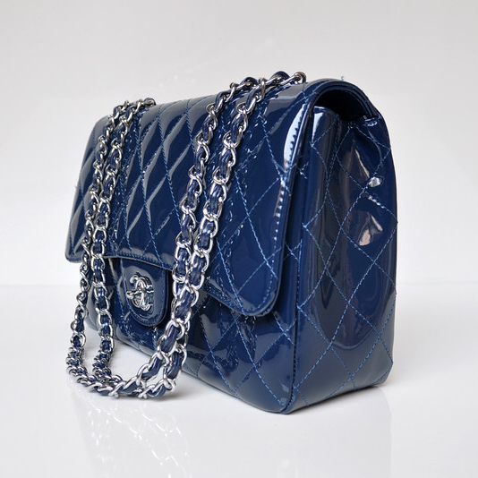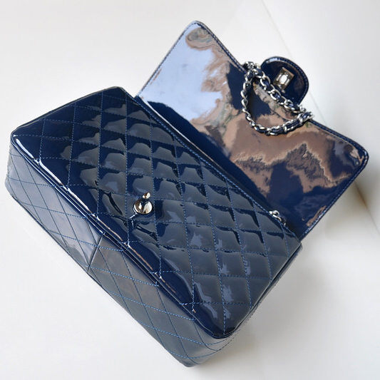 Chanel A28600 Patent Leather Classic Flap Bag in Blue with Silver