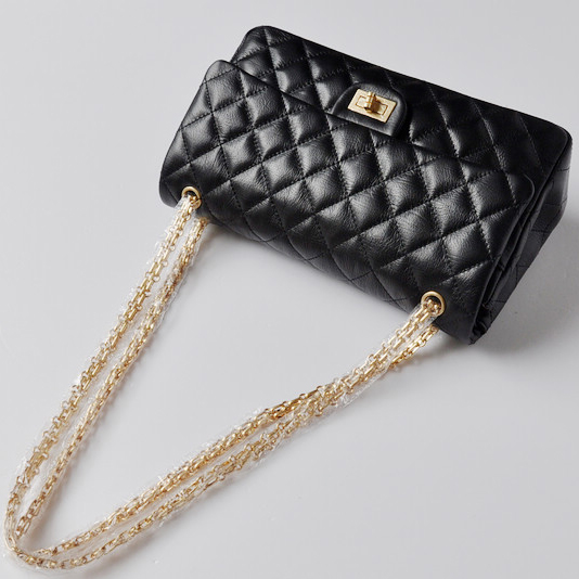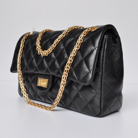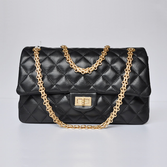 Chanel A30226 Black Glazed Crackled Leather Classic Flap Bag Gold chain