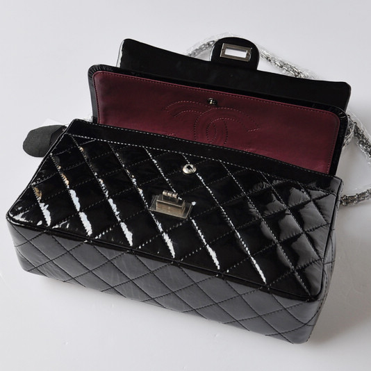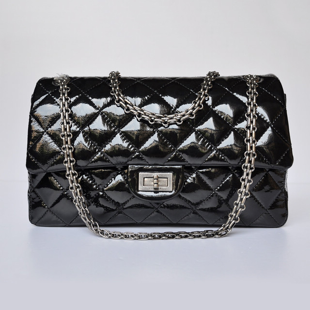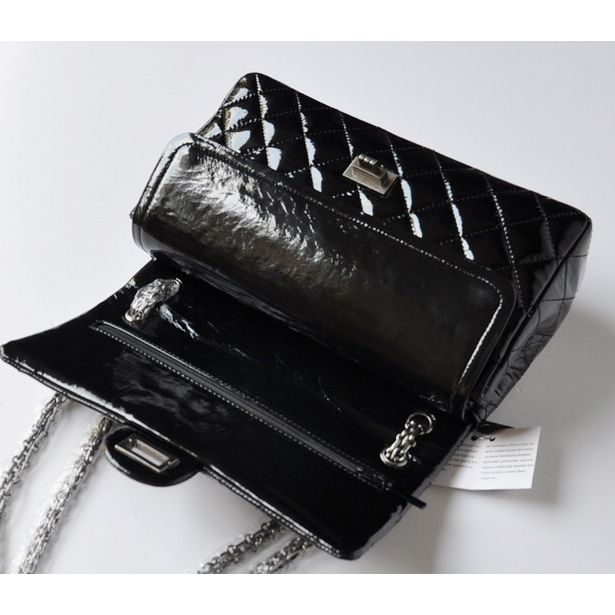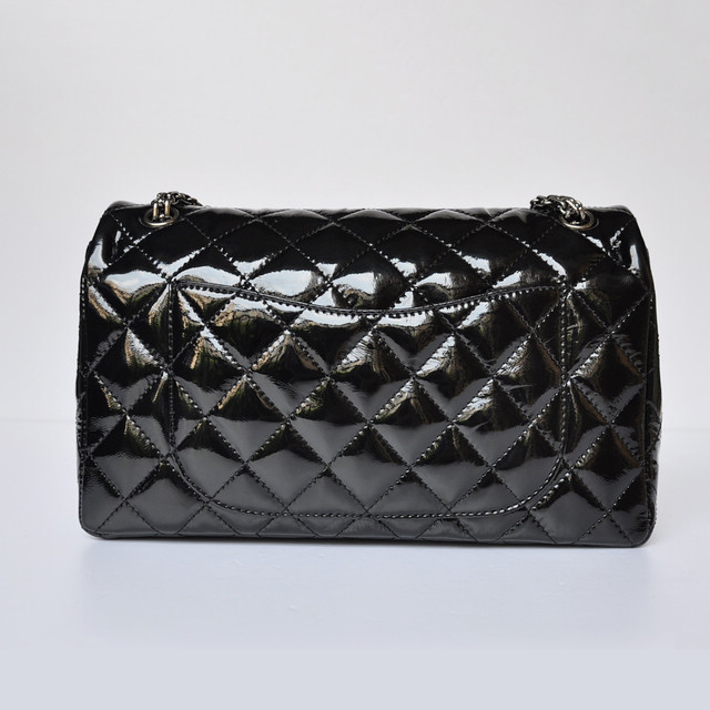 Chanel A30226 Black Patent Leather Classic Flap Bag Silver chain