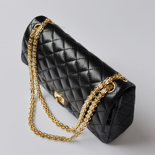 Chanel A30226 Classic Flap Bag Sheepskin Leather in black with Gold chain