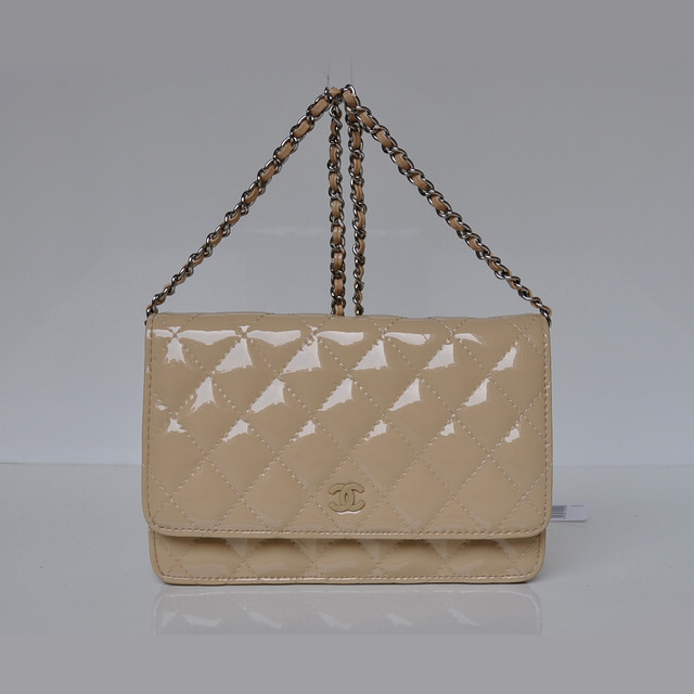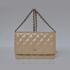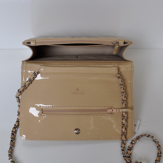 Chanel A33814 Patent Leather Flap Bag Apricot in Silver
