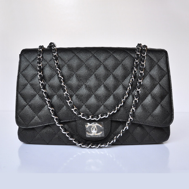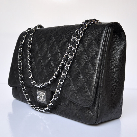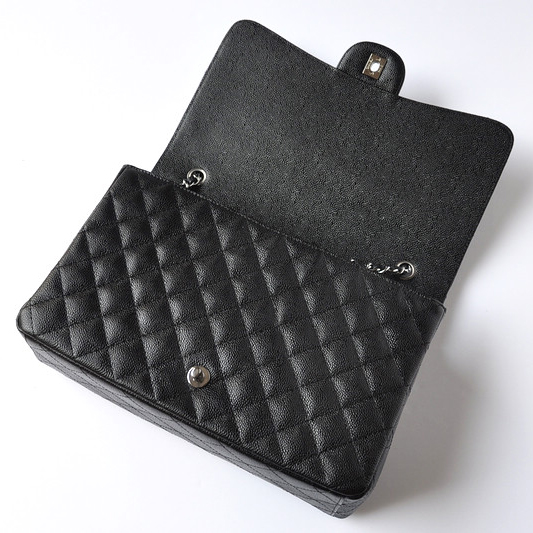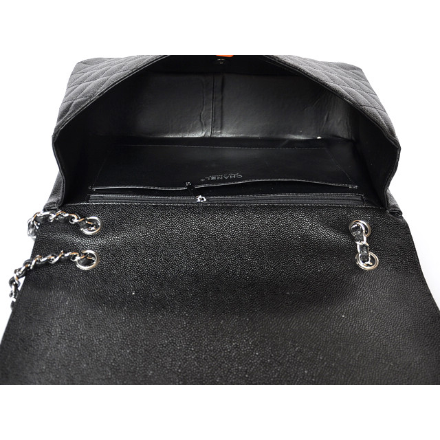 Chanel A47600 Caviar Leather Jumbo Flap Bag in Black with Silver